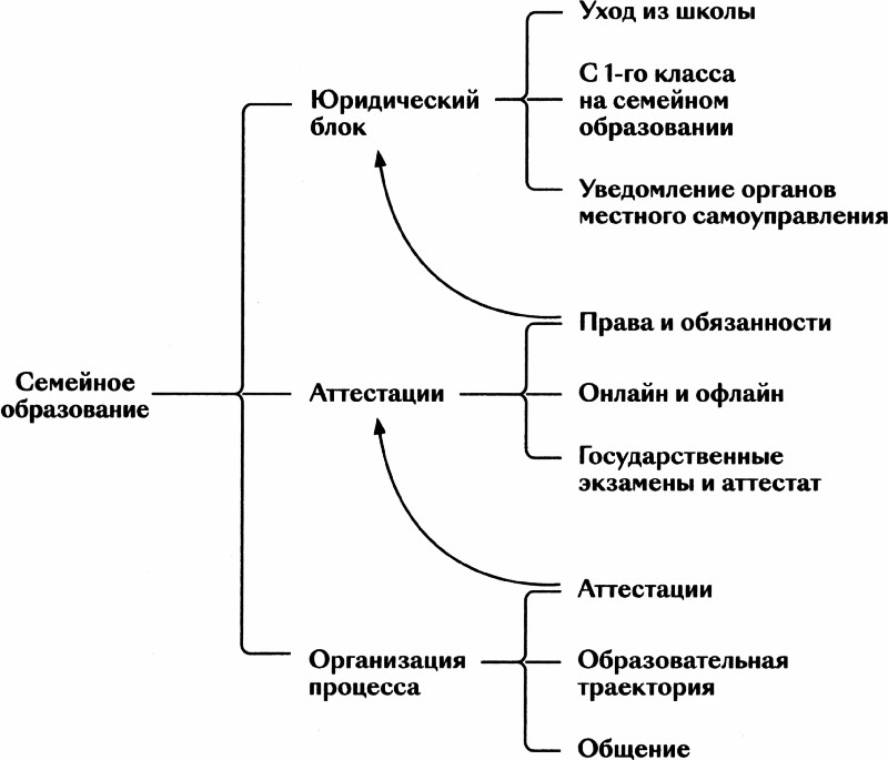 Вы можете раскрыть каждый блок, написав рядом с ним нужную информацию. Так, рядом с подблоком «Онлайн и офлайн» в блоке «Аттестации» можно указать школу, с которой вы планируете заключить договор на прохождение промежуточной аттестации. А рядом с подблоком «Уход из школы» составить перечень документов, которые вам нужно будет забрать.