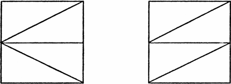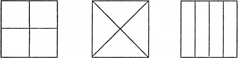 В своей экспериментальной работе мне часто приходилось давать детям такую задачу: «Разделите квадрат на четыре равные части несколькими способами». Решение обычно выглядело так: