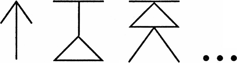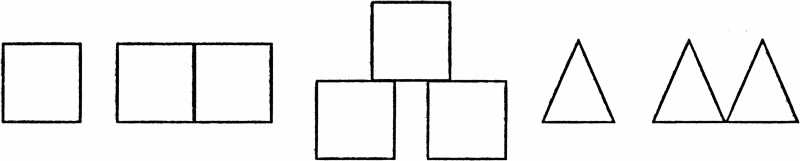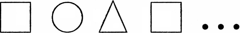 Один мальчик продемонстрировал то, что называется гибкостью мышления. Он предложил вместо точек поставить первую фигуру, тогда вторая может быть расположена после нее, затем третья... как в орнаменте, сказал он. Это решение не планировалось, однако нельзя было не согласиться, что этот вариант может быть признан правильным. После этого возникло еще несколько способов, например: поставить вместо точек третью фигуру, затем вторую и, наконец, первую; повторяя фигуры, наклонять их под разными углами и т. п.